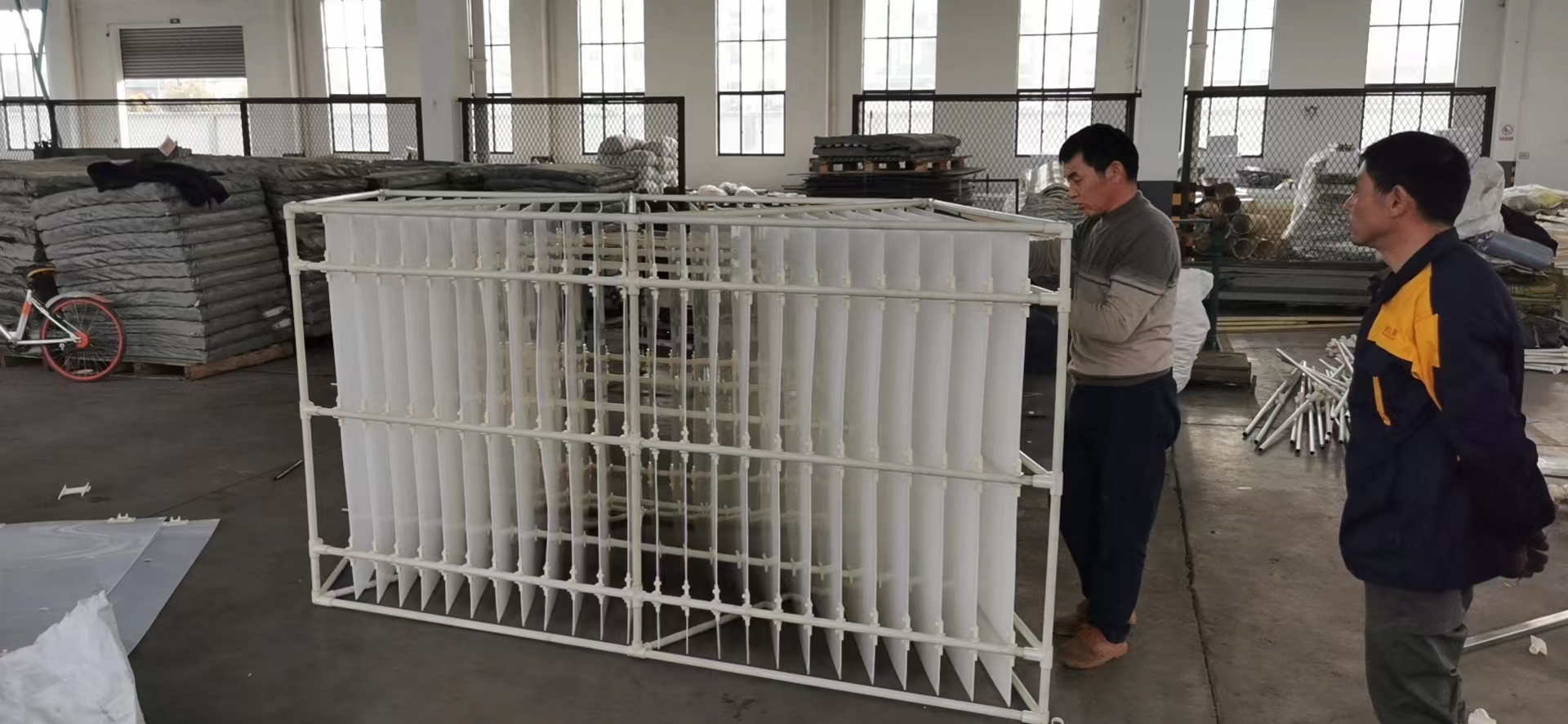 工程概况 :苏州相城污水处理厂沉淀池,设置PP材质斜板,为满足工艺要求,世界杯投注公司研发了棱形框架式平面斜板沉淀器,既适用于逆向流沉淀池也能适应侧向流沉淀池。产品特殊巧妙的结构及专有的固定方式,使PP斜板的刚性、滑泥性能与使用寿命都有了创新性的变化。世界杯投注公司研发的棱形框架式平面斜板沉淀器为国内始创。